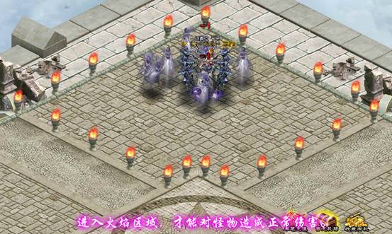 副本一共刷5波怪,每次刷怪注意地图的四个方块哦,你会发现有块方块是被火焰围起来的。发现怪物很难打吧?告诉你个诀窍,把怪物引到火焰区域。怎么样?怪物轻松被秒,经验很可观吧。