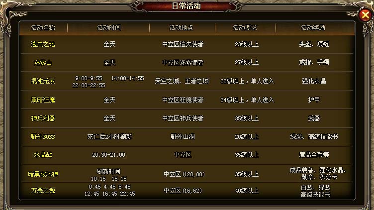 活动系统 屠龙战神变态版每日活动时间 奖励介绍