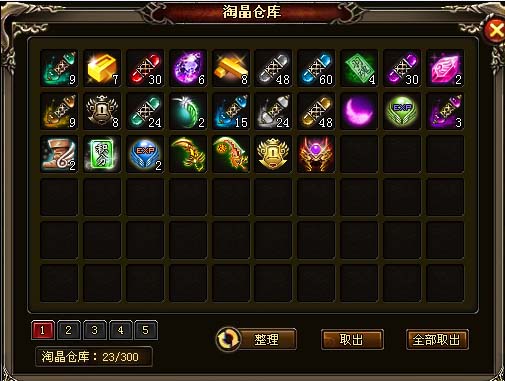 淘到的物品都存放在淘晶仓库中,可以一次性全部取出,取出的时候记得留出足够的背包空位哦。